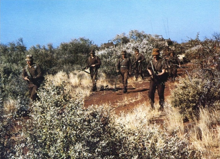 Пехотинцы армии ЮАР проводят операцию по разминированию дороги
