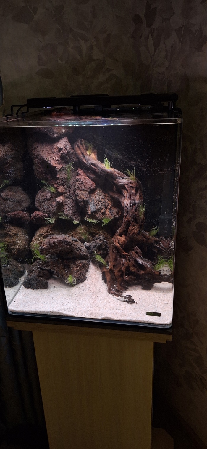 Обещал автору показать свежезапущенный аквариум, с похожим литражом, но в целях популяризации аквариумного хобби, решил закинуть пост в массы. Ведь даже если одному пикабушнику понравится и он пойдёт и купит аквариум, значит на планете Земля, на одного хорошего человека станет больше)