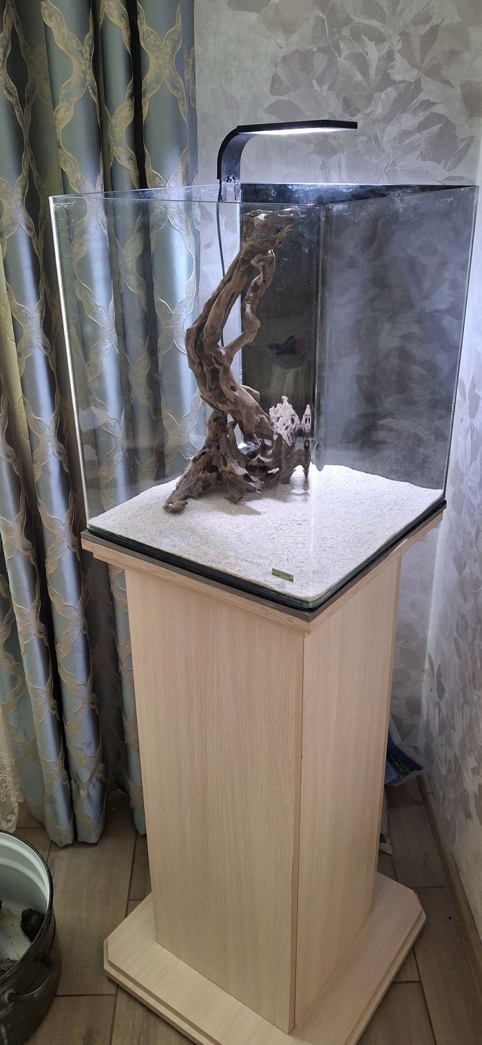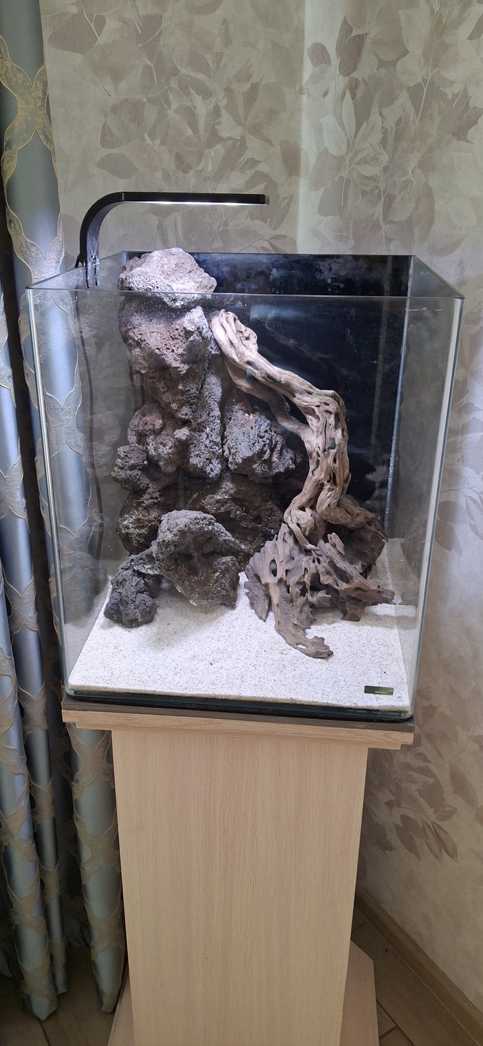 В этот раз решил не нервировать супругу, и особо не тратиться, а запустить акву из того, что было. Ну а было, это песок жбл, лава, которая была забракована при запуске большого аквариума и пара коряг: дракон и обычная мангровая. Фильтр у меня был, это закрытый рюкзачок с алика, и единственное, что пришлось докупить, это дешманский светильник с Озона.