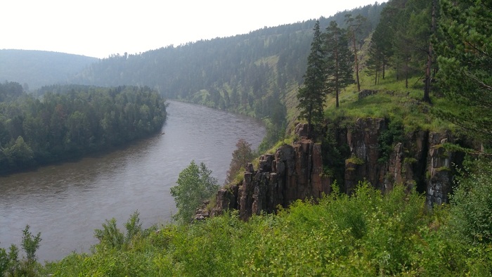 Где-то в той стороне - Иркутск. Виден край каньона. На это место можно ( за деньги , естественно) добраться на катере из Нижнеудинска.Тут я встретил несколько тургрупп - все из Красноярска. Иркутяне тут - диво. Все спрашивают - а чего вы не на Байкале?!