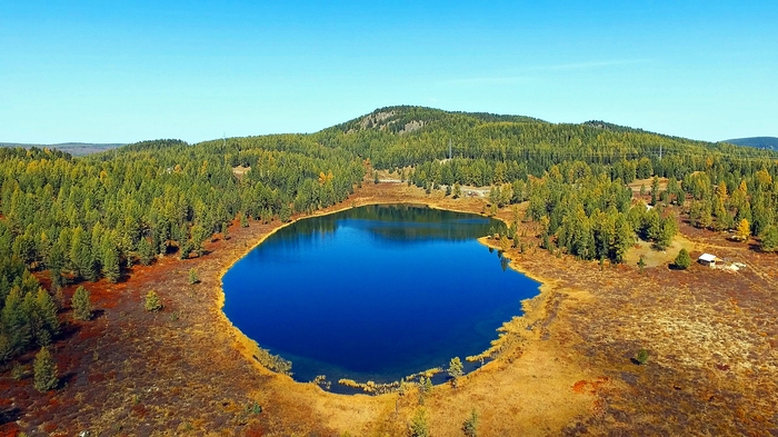 Озеро Киделю расположено в настоящем высокогорье: вокруг растут лиственницы, кедры, карликовые берёзки, можжевельник.