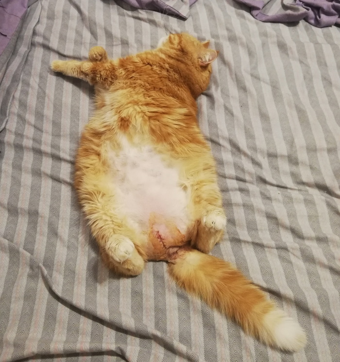 Спустя месяц после снятия швов шерсть отросла, небольшая стома прикрывается шерстью и все выглядит очень аккуратно) котик научился ходить в туалет без дискомфорта и живет своей лучшей здоровой жизнью! Самый активный теперь в доме. Продолжаю давать лечебный корм, лекарства пропили. Не отказывайтесь от операции если её предлагают, она того точно стоит! Котик будет жить и возможно даже еще лучше чем было до! На все лечение ушло больше 70 тысяч рублей, будьте готовы отложить такую сумму когда начнете лечение, главное не бросайте своих питомцев( вы не представляете что они чувствуют в этот момент и как им тяжело и благодарность точно увидите ♥️