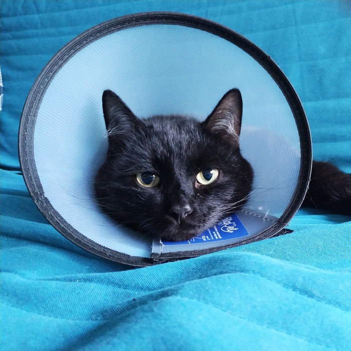 К воротнику кстати полностью привык, уже научился лежать в разных удобных позах и не бьется об предметы когда ходит по квартире, но когда он на кровати рядом со мной, то я снимаю его чтобы он вылизал шею, лапы, живот, слежу чтобы не лез в область швов, держу под контролем так сказать)