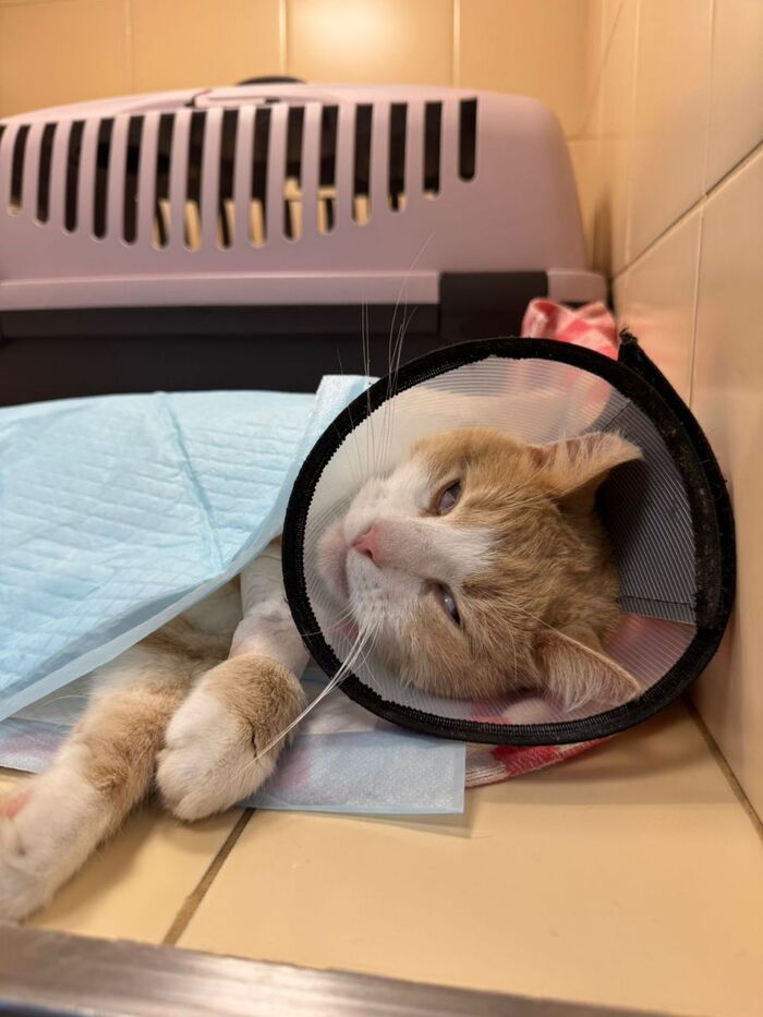 15.09 рано утром мне позвонили из клиники и сказали что у Марса состояние удовлетворительное, но было ночью низкое давление, а так же врач кардиолог поставил ему диагноз ГКМП (гипертрофическая кардиомиопатия) и что нужно будет наблюдаться каждые пол года у кардиолога и считать сколько в минуту он дышит, чтобы предотвратить появление отека легких или проблем с сердцем. Анализы все были в норме, кот ел, пил, ходил в туалет и моча хорошо шла через котетер. Вечером мы поехали его забирать и нам назначили еще неболит-вет суспензии. По дороге домой я почуяла зловонный запах, Марс испрожнился под себя пластелиновообразной консистенцией и это было начало мучений… Дома он был активный, даже играл с другими котами, но буквально каждый час из него понемногу выходил кал и пачкал все вокруг, в том числе саму уретростому. Я каждый час ему там все протирала физ раствором, не спала практически ночами. И так было 2 суток, пока не наступило 17.09 и во время очередного протирания я заметила огромный кровяной сгусток из уретростомы, который тянулся как сопля. Время было 5 утра, у меня паника что вдруг это что-что отслоилось или вывалилось 😳 и я тут же набрала клинику и поехала рано утром. В клинике не было очереди и нас сразу приняли, объяснили что у него в мочевом много таких сгустков и это нормально, у кого-то они есть, у кого-то их нет, все там промыли и сказали что они не мешают походам в туалет, тк дырочка большая, просто сами будут выходить или помогать убирать. Взяли анализы крови и по моей просьбе назначили еще форти флору для улучшения стула. Это порошок который добавляется в еду чтобы нормализовать микрофлору, сказали что возможно это реакция на лечебный корм Уринарий S/O. В этот день мы еще поехали планово к хирургу для проверки швов. Он посмотрел, сказал что со швами все хорошо, плохо то, что он опрожняется так и зараза может попасть в уретростому, так что прям из шприца нужно лить напором в уретростому по 20 мл физ раствор для обеззараживания. Анализы пришли и показывали они повышенные Базофилы и лейкоциты. Хирург сказал что это нормально, антибиотик справится. По бак посеву есть чувствительность к кладаксе которую нам прописали и назначили её аж до 24.10, больше месяца принимать, так же как и габитабс, который нужно будет давать чуть ли не пожизненно. В итоге до 21.09 все было хорошо. Кот и кушал и пил и ходил в туалет, стул нормализовался и обработку его стомы мы делали 2 раза в день, но в этот день мы заметили что из одного шва идет немного крови, но подумали, что ничего страшного, а после обработки он пополз по полу и попытался вылизаться, и прям воротником лезть к швам. Через 5 минут я гляжу на него и все в крови, вся промежность, лапы, домик в котором он лежал и воротник. Кровь текла без остановки, у меня чуть не остановилось сердце, ведь крови я боюсь до ужаса и то что у кота кровотечение меня напугало больше всего. Я давай звонить в клинику, хирургу, но как на зло никто не может принять, ведь это воскресенье и врачей мало, а если есть то все под запись…и я решаю позвонить в совершенно другую клинику где нас принимают экстренно. Я кота в ахапку и срочно в больницу, он орет, рычит и очень недоволен, никогда так не пытался вырваться из переноски. В больнице остановили кровотечение и сказали что разошлись швы пока он терся об пол, сказали что нужно зашивать, но и это экстре