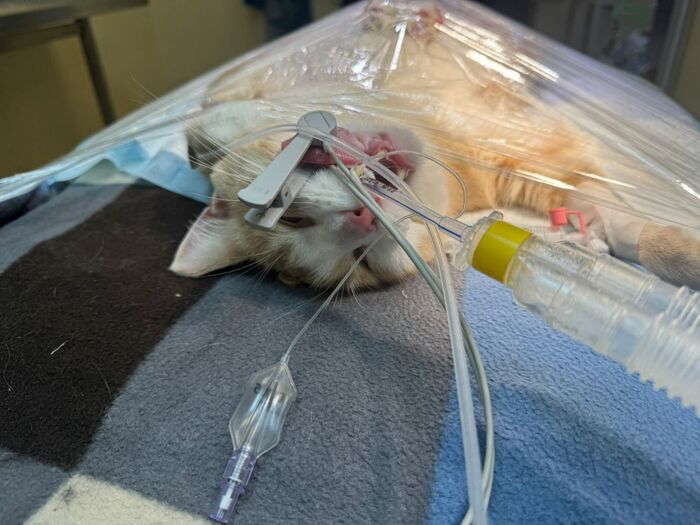 14.09 и снова везем Марса в клинику и нам уже говорят, что мочевой пузырь не может сам сокращаться.. мочевой переполнен и сам он никак уже не сходит в туалет и только операция. Я очень надеялась что нам получится её избежать, ведь столько начиталась отзывов об этой операции, какие бывают осложнения и как скажется это на жизни котика, но согласилась, ведь понимала что он просто умрет без нее и что мучать его катетерами будет по зверски. Отвезли в лучшую клинику города, где нас принял прекрасный врач у которого было очень большое сочувствие к котику и дал нам надежду что после операции ему станет на много лучше. Послушав сердце он услышал шумы и сказал что есть вероятность, что котик может не очнуться после наркоза, на что моя реакция была такая плачевная, что мне даже предложили присесть. Мы согласились на операцию ознакомившись со всеми рисками, ведь стоял вопрос жизни и смерти и без этой операции он бы умер. Его так же кастрировали и удалили подкожное яичко (Марсик был крипторхом) Поставили внутрь катетер и мочевой мешок и сказали что нужно везти в стационар хотя бы на сутки, чтобы он был под наблюдением врачей, ведь состояние могло ухудшиться. Как сказал врач, отходил от наркоза он очень хорошо, не было остановок сердца или дыхания, что меня несомненно порадовало. Посоветовал прием к кардиологу из-за шумов в сердце. Отвезли в стационар и записали к кардиологу на следующий день, сказали что будут наблюдать за состоянием и через 24 часа приехать за котиком и нам скажут продлевать нахождение в стационаре или уже можно будет забрать домой под наблюдение.