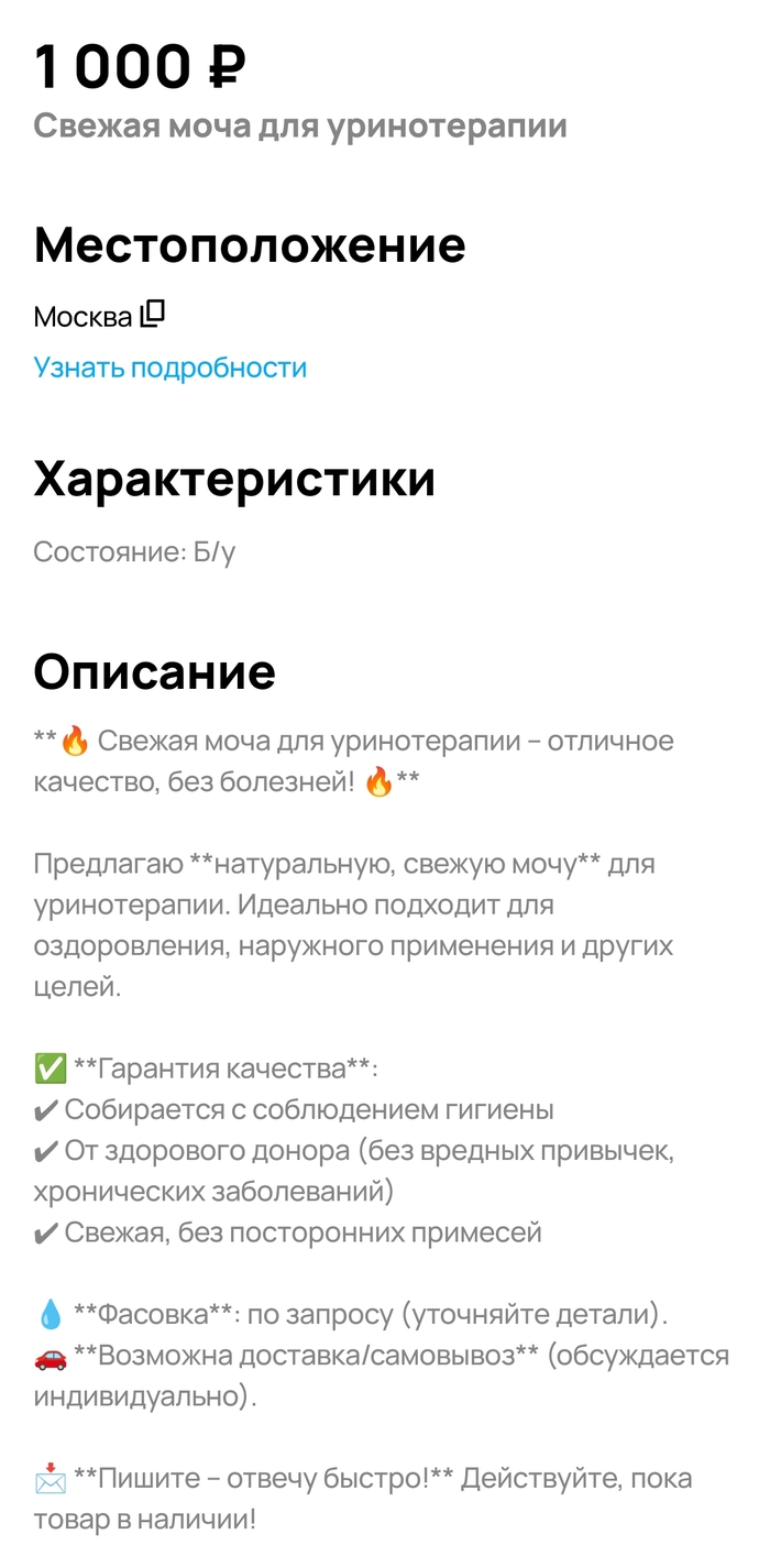 Студент пакистанец наткнулся на старую семейную легенду о целебных свойствах мочи верблюда – в исламской традиции это средство от болезней, от простуды до проблем с кожей, и он, с его амбициями заработка, решил монетизировать идею, Ахмад, с его глазами, полными юношеского энтузиазма, приехал в Россию и занялся "экспортом" – начал продавать свою мочу под видом верблюжей на МП вроде Wildberries и Ozon, где объявления с фото "экзотического эликсира" привлекали покупателей, верящих в народные средства. Бутылки по 100мл уходили по 500 рублей, и Ахмад, снимая крошечную комнату в хостеле на окраине, где койки стояли в ряд, пил по 5-7 литров воды чтобы производить товар.