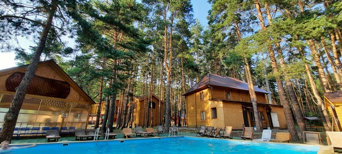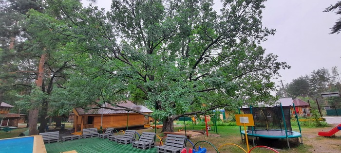 База отдыха аккуратненькая, чистенькая. Руководство радеет за своё дело, поэтому и уборка качественная и вид приятный. Кругом глаз радуют цветочные клумбы, деревянные сказочные герои. Есть здесь и своя достопримечательность - трехсотлетний дуб. Ну естественно с цепью и учёным котом.