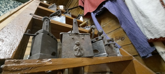 Экспозиции музея. Со слов экскурсовода: на поддувале утюга заслонка выполнена в виде лица Л. Толстого, "преданного анафеме, что бы каждая хозяйка разжигая утюг могла плюнуть в его глаза бесстыжие..." О времена, о нравы...