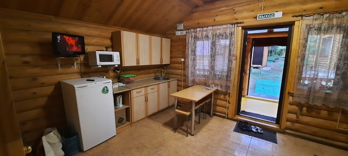 База отдыха видимо обработана от комаров и других насекомых. И днем их вроде не много. Но вот москитная сетка только на окнах, а на входной двери нет. Поехали в Шигоны и купили сами на магнитах, ну а установить проблем не составило.