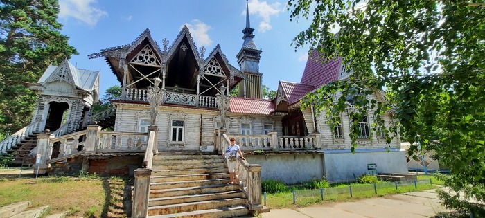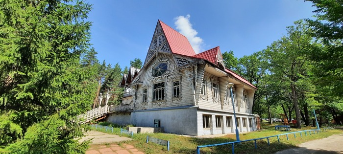 Ещё заезжали полюбоваться резным строением бывшей столовой на б/о Дубки в Шигонском районе Самарской области. Какая красота! Терем как из сказки про Берендея. Жаль что не реставрируют.