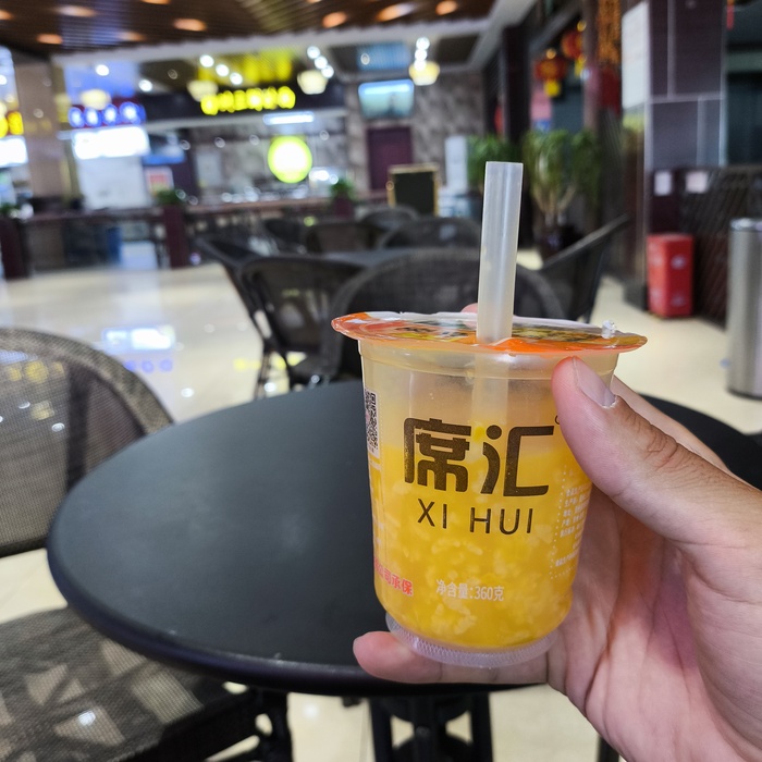 После вчерашнего даже боюсь завтракать. Купил какой-то напиток XI HUI, что больше похож на рисовую кашу, в Чили делают такой же, только с перловкой. Сытно и легко, то что надо!