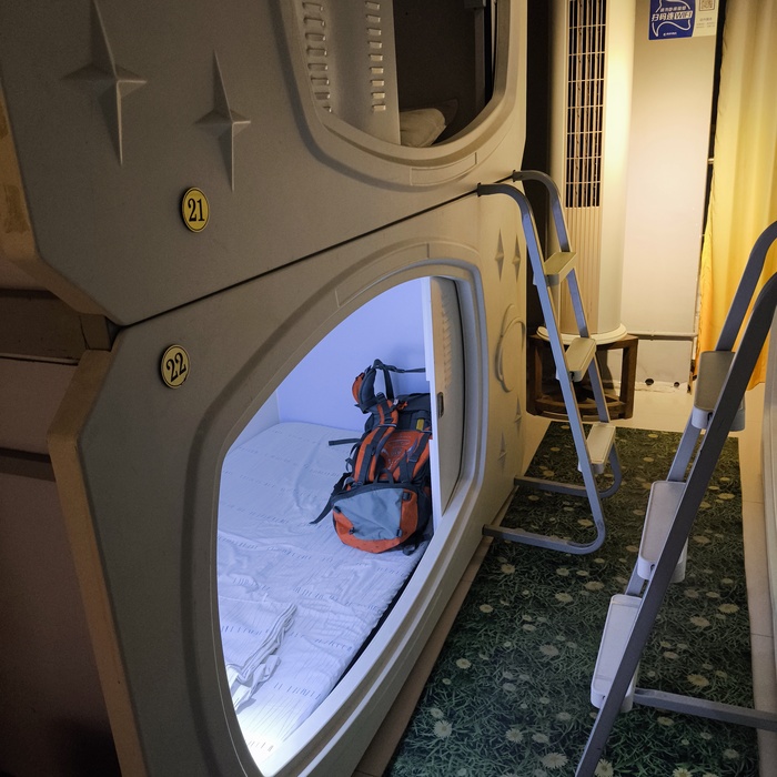 В хостеле на 14 этаже (из 30) я познакомился с его хозяином Вэйминем и семьёй. Оказалось, что они живут прямо здесь, параллельно предоставляя капсулы для гостей и студентов. Всего 50 юаней за собственную "комнатку".