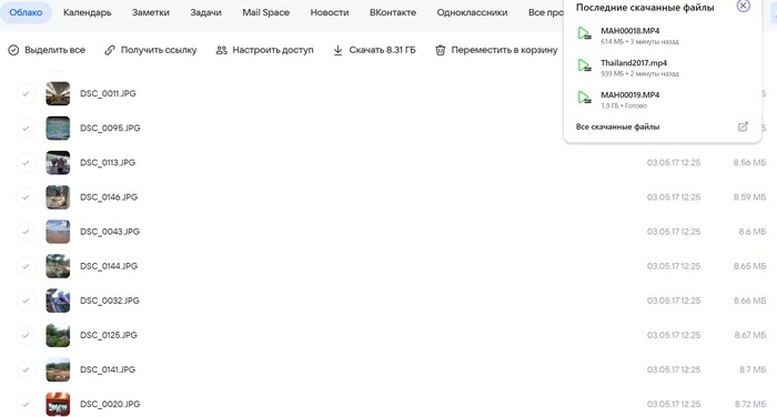 Нас интересуют самые большие по объёму файлы и папки. Конечно же это фото и видео. Беглым взглядом смотрим, что нам может пригодиться и представляет ценность. Скачиваем эти файлы на компьютер. Папки скачиваются zip архивом, для которого даже не нужен архиватор. Можно полазить по папкам и посмотреть фоточки, но есть риск утонуть в ностальгии =).