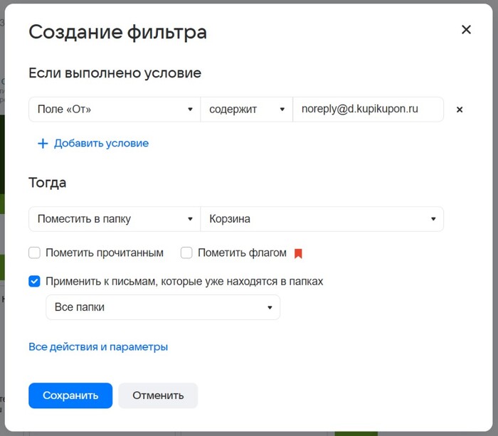 В самом почтовом ящике можно попробовать избавиться от ежедневного спама. Если вы видите что с какого-то адреса вам каждый день приходили ненужные письма, то можно создать фильтр на его основе и применить ко всем папкам. Это делается внутри письма через 3 точки, или командой SHIFT+L.