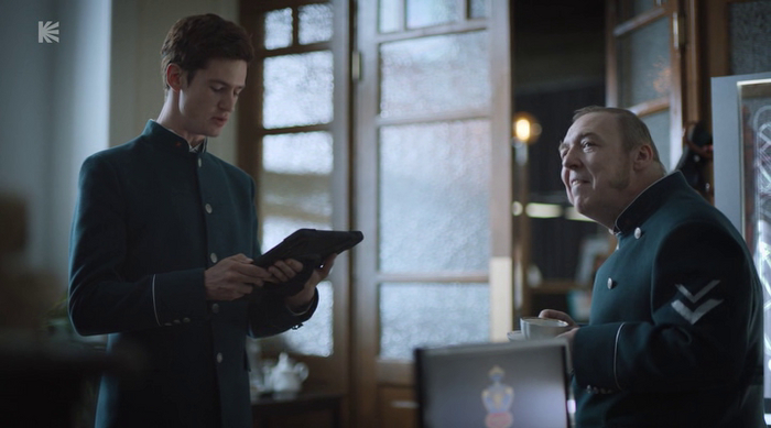 При этом, даже оригинальная дореволюционная форма умудряется выглядеть более современной и презентабельной, чем те сюртуки учащихся земского ремесленного училища, в которые костюмеры нарядили персонажей.