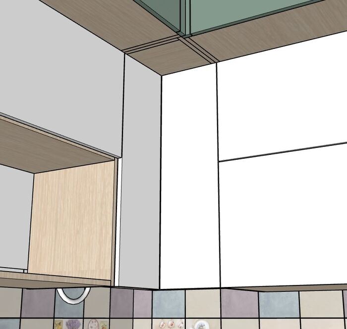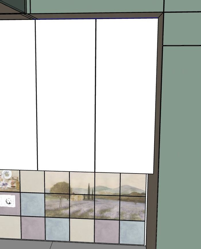 Ручки на всём гарнитуре предполагаются с выпиранием на 26мм, поэтому максимальное открывание створки вверх возможно на 80*. Зазоры между фасадами хочу 3мм.