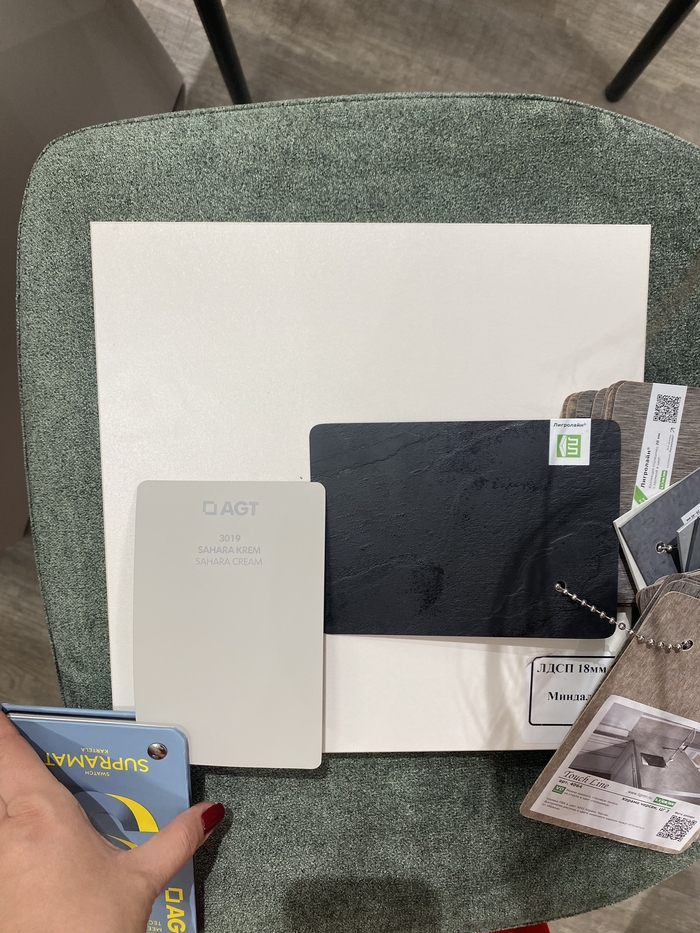 Добрый вечер!!!форумчане,кто-нибудь сталкивался с МДФ фасадами в эмали (с 1 стороны) и МДФ в очень качественной пленке?что лучше предпочесть?если МДФ дешевле, но прокрас лишь с 1 стороны будет. И по деньгам разница порядка 40-50 тыс .на фото пленка агт и краска .в семье маленький ребенок плюс непонятно какие основные корпуса делать :антроцит или миндаль или белые оставить.черную столешку тоже приложила для зрительного восприятия