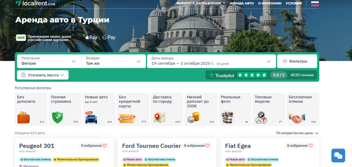 Аренда авто в Олюдениз Турция - ТОП лучших сервисов проката машин в Олюдениз 2025