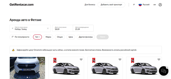 GetRentACar — платформа, где удобно «играть» фильтрами и сравнивать разные предложения, не тратя целый вечер на перекладывание вкладок. Для Олюдениза и Фетхие это полезно: здесь есть и маленькие городские хэтчбеки для парковки у набережной, и кроссоверы, если вы нацелены на пляжи за чертой города или ранние выезды кканьонам Саклыкент и Гёйнюк. В интерфейсе всё прозрачно: тариф, депозит, страховки, условия отмены — всё лежит на поверхности.