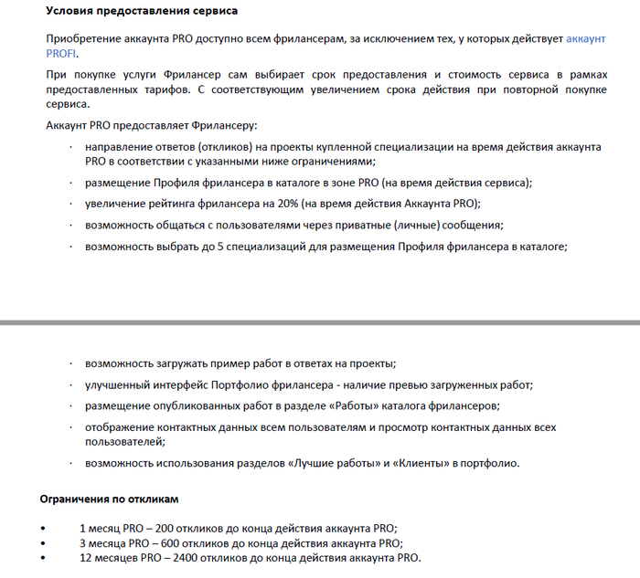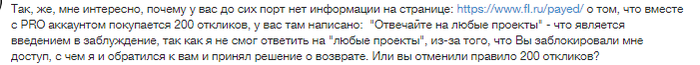 А после того, как я поинтересовался, почему на странице покупки PRO до сих пор нет уведомления о том, что вместе с PRO покупается только 200 откликов. В общем вот мой вопрос: