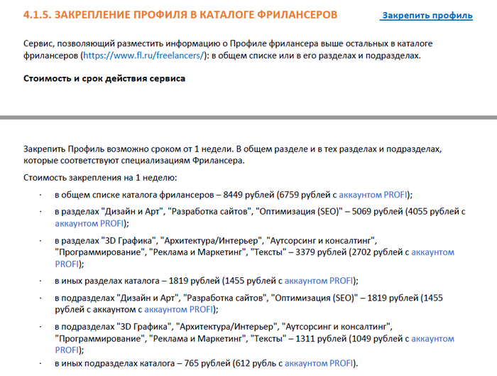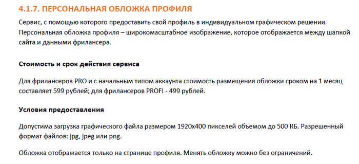 И что самое удивительное, даже обложка профиля, которая раньше была бесплатная, и скажем на том же freelance - она бесплатная, то здесь они и за нее берут бабки: