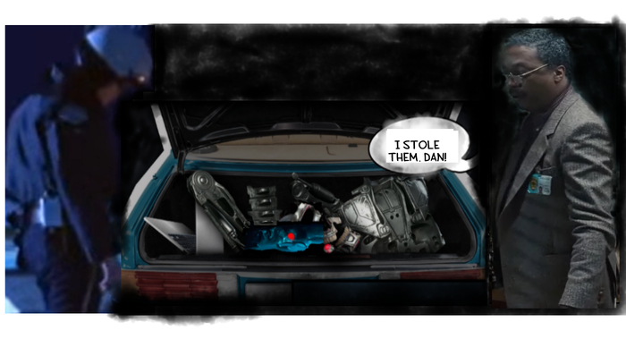 Эд Трекслер: -Вылезай, Я покажу тебе Раздавленные обломки Робота!-(он тайно похитил их с "Кибердайн Системс" ранее)!-