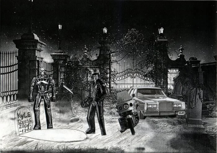 Аннотация к Терминатору 7 или «Последний Киногерой 2 (Last Action hero 2): Дополнительный Металл и легенда о Роботе Убийце или Терминатор 7 . Рассказ является продолжением к Голливудскому комедийному боевику и фантастическому, мистическому фильму-«Последний Киногерой 1993» основной сюжет которого: частичные пародии на другие фильмы (Главный герой пародирует свои предыдущие роли в Голливудских блокбастерах). И в продолжении этой истории мне пришла идея вложить в ее сюжет продолжение истории другого параллельного Голливудского Блокбастера продолжение о истории про Терминатора (после всех шести частей) про эту историю как ночной сон будет рассказывать (героям «Последнего киногероя 2» Дэнни Мэдигану и Джеку Слэйтеру) некий герой Православный Священник-Джо Ролтон, Джо Ролтон будет рассказывать историю про героиню из последних шести частей о Терминаторе Сару Конор , которая по сюжету в 2027 году отправится со своей подругой Дани Рамос (героиней из Темных Судеб) из Мексики в путешествие по Европе и Азии ( с начало это будет как обычное туристическое путешествие). И в Германии Сара узнает что в мире существуют два человека похожие своими лицами на уничтоженных ранее в 1994 году роботов (Т1000 и Т800) которые стремятся роботизировать мир один будет ученный работающий в Северной Корее, а другой будет в банде Байкеров и Рок музыкантов Глэм Хэйр Металл группы Дополнительный Металл или по сокращенному "МЕТАЛЛ" в России и Сара решает что этих людей нужно переубедить, что бы они отказались от таких планов, и после этой новости о существовании этих личностей, далее ночью Саре снится предупреждающий сон –о том, что бы она не приближалась к этим похожим на роботов людям и тогда она будет в безопасности, а после сна Сара скажет себе: я буду в безопасности а остальной мир!?-, И решается все равно ехать и искать тех людей и далее ко всему этому еще самое главное добавится, когда она будет находится уже заграницей и будет спать, Саре Коннор будет сниться сон о Кайле Ризе (этот сон ей снился еще во времена фильма Судный день - это и будет дальнейшее продолжение того сна) на сне и будет основана вся развязка сюжета, но и дальнейшее продолжение рассказа после событий во сне, потом будет происходить уже на яву (в реальности)! В отличие от предыдущих частей о Терминаторе из будущего ни роботы ни люди уже не будут приходить.юди уже не будут приходить.