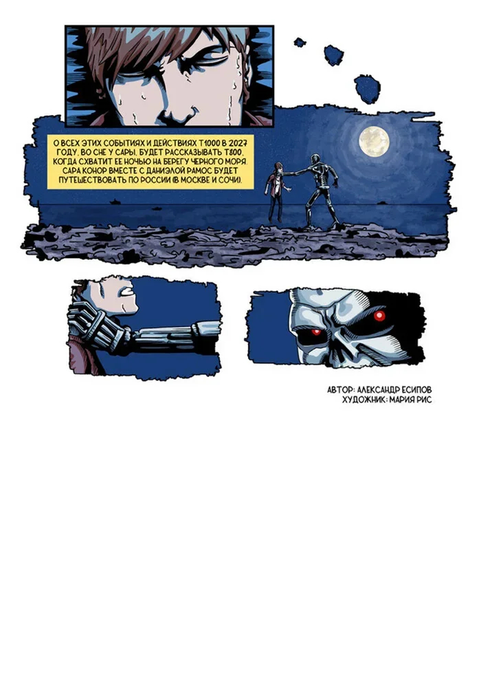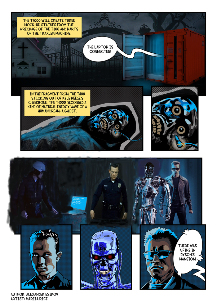 Далее Окончание событий будет в Северной Кореи! Комикс создан 2023 г. Соответственно есть версия где Т1000 собирает Т800 Скелета и все! Также у Рассказа есть три версии.