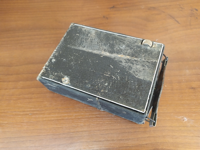 Зато когда камера открылась, это был настоящий вау-эффект. Она сохранилась прекрасно, даже несмотря на потёртый кожзам. В сложенном состоянии эта штука превращается в такую "капсулу времени", что сотня лет для неё проходит почти незаметно.