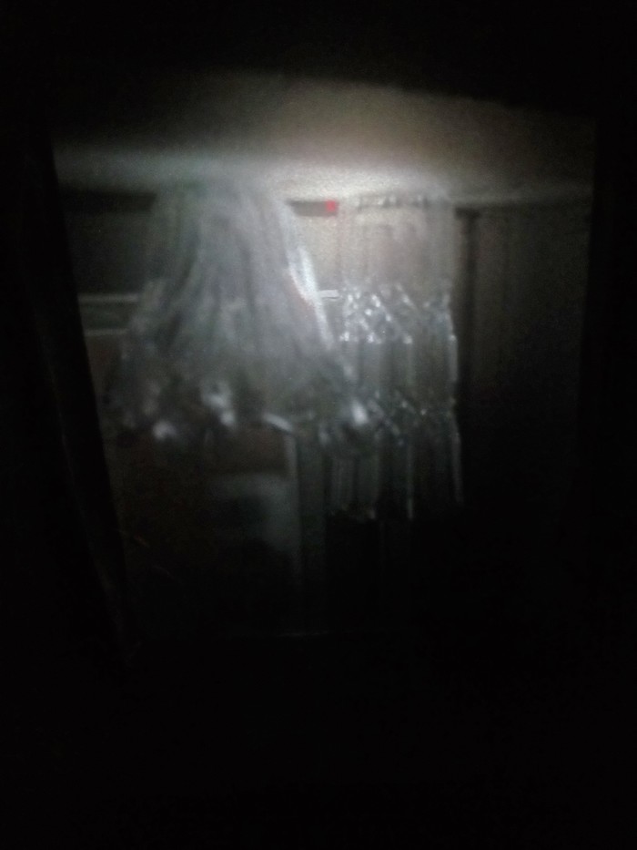 И ставим его в пазы сзади.Теперь, если посмотреть на это самое стекло, можно увидеть проецируемое объективом изображение. Оно будет перевёрнутым и отзеркаленным.