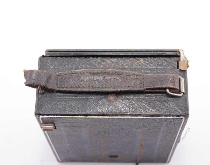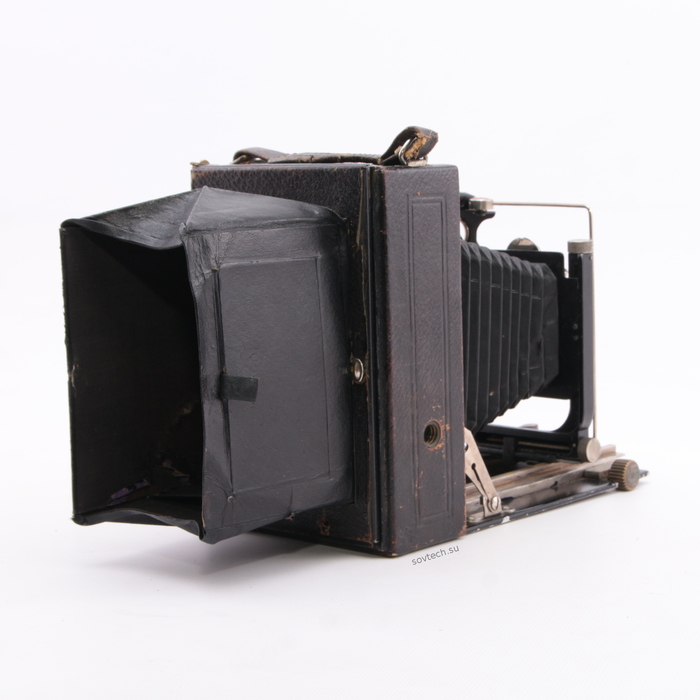 Размеры фотопластинки по современным меркам огромны - 9 на 12 сантиметров. Матрицы цифровых фотокамер редко бывают больше чем 3.5х2.5 сантиметра, плёночный средний формат - 6х6 или 6х9. Впрочем, за всё приходится расплачиваться. Но об этом чуть позже, а пока давайте посмотрим на сам фотоаппарат поподробней.