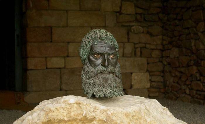 Бронзовая голова статуи, обнаруженной в царской гробнице Голяма Косматка, вероятно принадлежавшей Севту III. Национальный археологический музей, София.