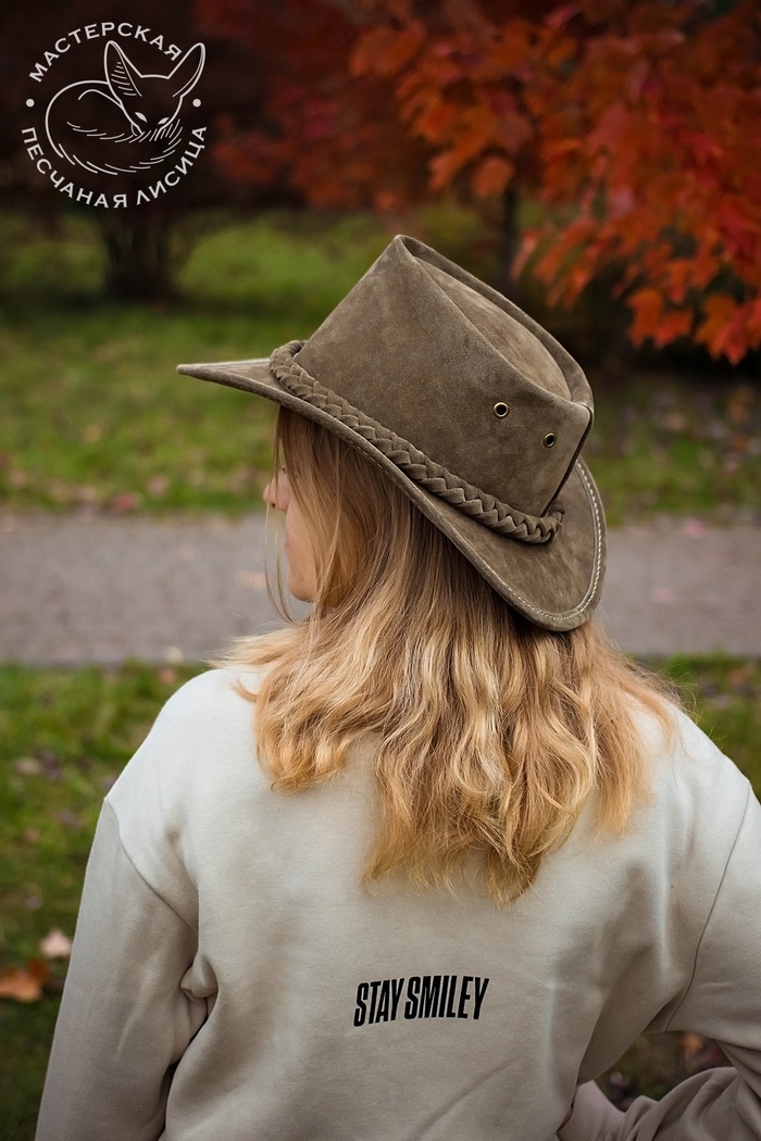 Австралийская шляпа в цвете хаки из вот этой подборки выполненных работ. Все фотографии в один пост не помещаются, поэтому фото на модели публикую отдельной записью.