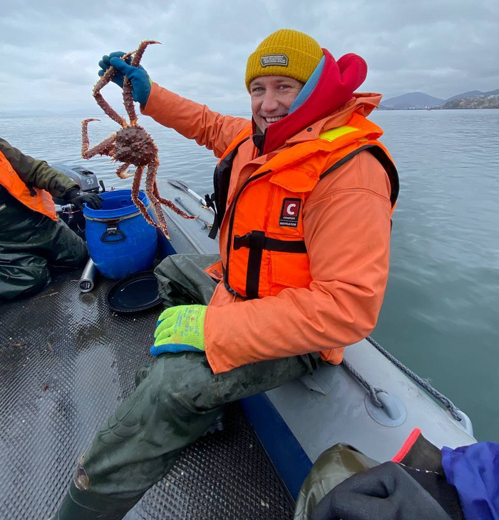 Опять же едут и за морепродуктами, которых тут хватает: красная рыба во всех проявлениях (теша, балык, юккола, икра), крабы (камчатский, стригун), креветка с севера Камчатки, гребешок с Сахалина. Можно найти и икру морских ежей (полезная, но мне на вкус вообще не понравилась), трепанга на меду (не пробовал). Я ехал за крабом. Я покупал в Иркутске замороженного краба, пробовал и не впечатлился, а в прошлый приезд на Камчатку я распробовал свежесваренного (парного) краба. Он великолепен! Важно, чтобы был свежий и не знал заморозки. В первый день мы купили 1,5 кило краба, а через пару дней поехали на крабовую рыбалку (крабалка она тут называется). За несколько часов мы наловили порядка 30 крабов, сварили их (варится в морской воде), сколько смогли - съели прямо на берегу, а остальное забрали с собой. Все дни до отлета я завтракал, обедал и ужинал свежим крабом. Даже по рецепту гида делали яичницу с крабом - это улётно! Икра, в мае была ещё прошлогодняя - но тоже вкусная, на рынках везде дают пробовать, и на вкус очень разная: была и сухая, и горькая, и кислая, и как кисель. Пару дней выбирал и пробовал какую взять домой, взял самую вкусную. Если мы едим икру на бутерброд с маслом, то местные едят ее просто ложкой, говорят даже в картофельное пюре добавляют.