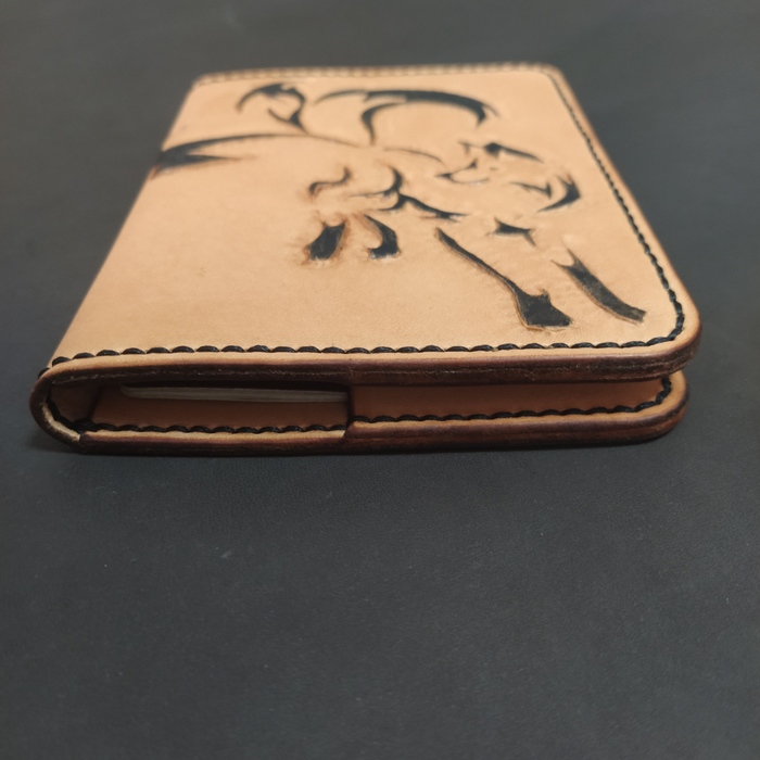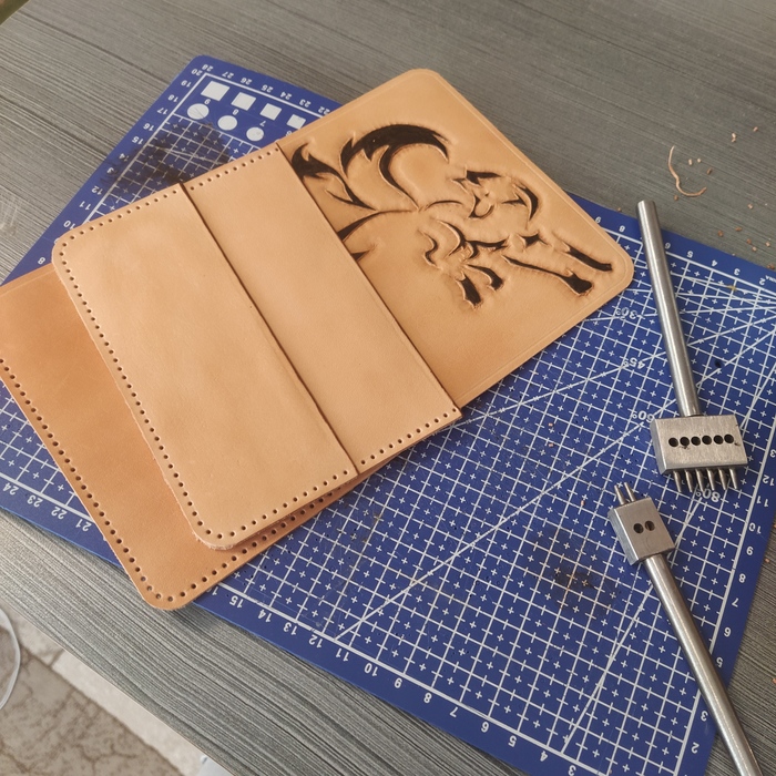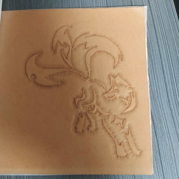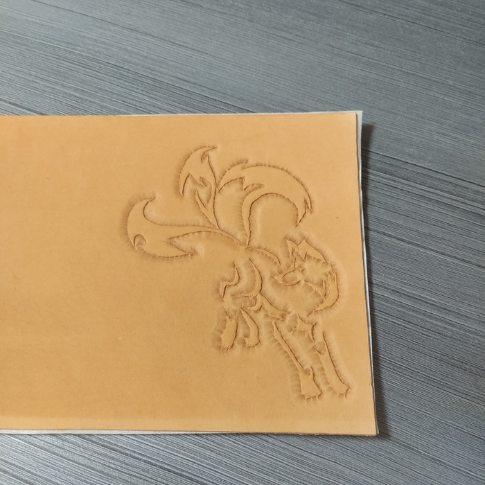 Проба своих сил в тиснение. Рисунок выбирал попроще, т к не знал, что получится и получится ли вообще)) материал: кожа растительного дубления (2мм), нить вощеная плоская (0,8мм). Получилось не очень аккуратно, но вроде что то получилось). Прошу сильно тапками не кидаться).
