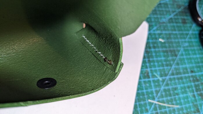 2) берем маникюрные ножницы и делаем 2-3 надреза, чтобы кнопка могла пройти через отверстие.