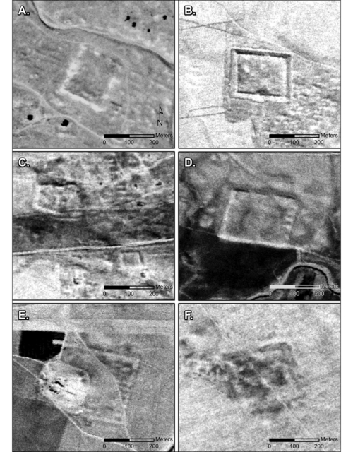 Наиболее распространенная форма, которую принимали как вероятный форт, это классический квадрат, со стороной 50-80 м. Эти здания часто изолированы, вдали от других очевидных археологических объектов и часто расположены в пограничных условиях с небольшим количеством других свидетельств древнего или современного поселения.Так же были найдены крупные обьекты состоящие из нескольких зданий окруженных стенами со сторонами до 200 м.