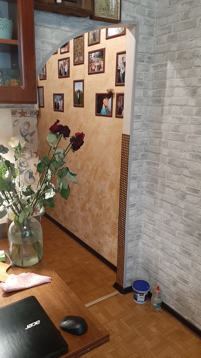 А в коридоре стеновое покрытие. Износу нет! Арка из денег. Внук один аутист, приедет, поставишь его в угол, стоит весь день, считает. Мимо идёт кто, толкнёт, он сбивается - заново считает 😁. Турник есть! Грушу боксёрскую забрал)). Короче, можно в одну комнату заезжать и делать косметику в зале. Дом, кстати, тоже теперь красивый. По конструктиву лучше, чем новострои. Хрущёвки из бетонных блоков на простенок - это топчик СССР по надёжности. Лет 100 еще простоит, не то что новострои современные узбекмонтаж, а тут бетон еще и не замачивает, коррозии нет.