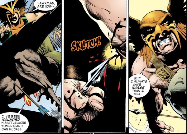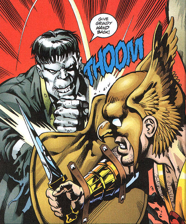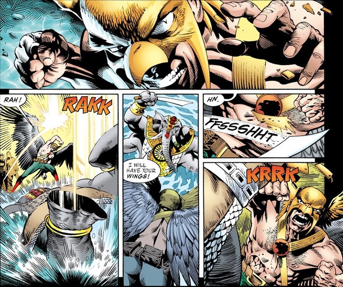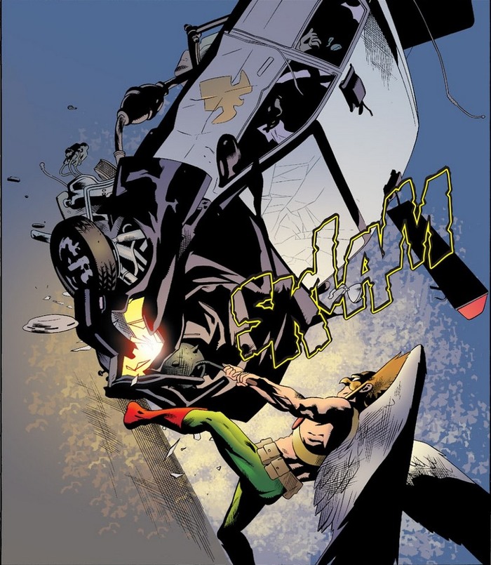 Но похоже, с тех пор Орлолюди прокачались – теперь на них не действует оружие, которое действовало раньше, а лучи из их глаз то ли уничтожают предметы, то ли телепортируют в неизвестном направлении – тварям удаётся избавиться от крыльев Орлицы и сбежать! Что ж, придётся выманивать. Хоукмэн и Орлица отправляются в северную Канаду (Орлица прихватила запасные крылья). Используя зажигательные бомбы, герои выкуривают Орлолюдей из убежища, а затем рассыпают в облаках угольную крошку. Вскоре маски Орлолюдей становятся бесполезными, с залепленными гляделками особо не постреляешь. Замотав тварей в сетку, крылатые герои сдают их полиции.