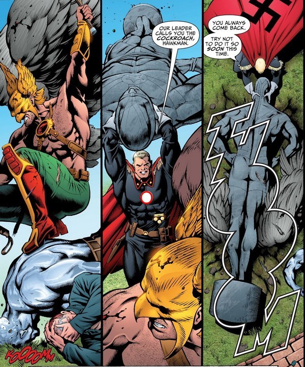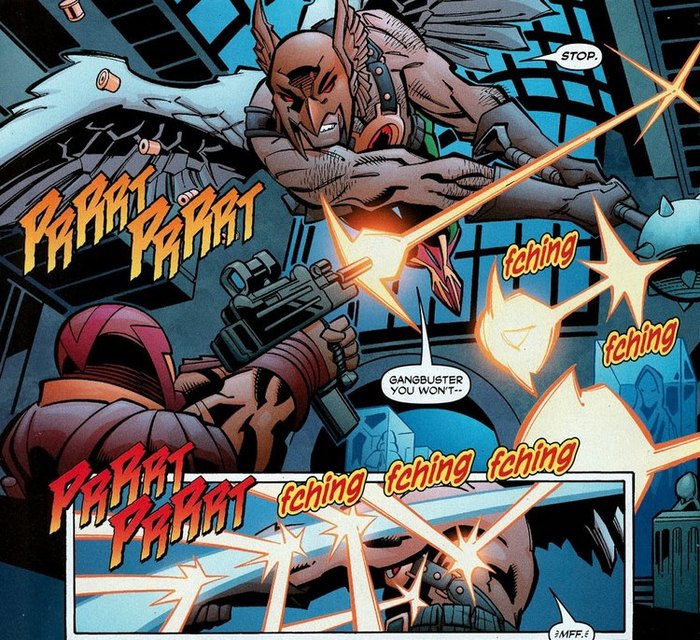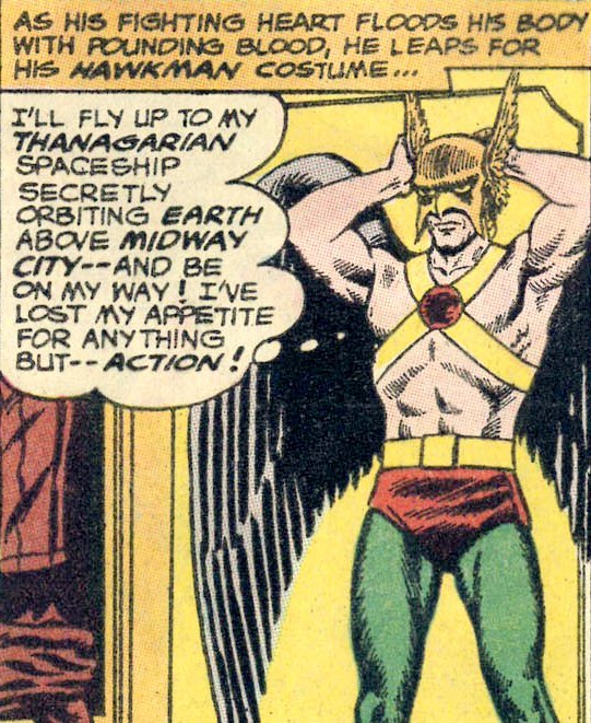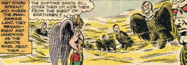 А комикс The Brave and the Bold #42 посвящён уже Хоукмэну. Инопланетные полицейские Катар и Шайера Хол временно возвращаются на родную планету Танагар, чтобы отдохнуть, а отдохнуть-то как раз и не получается – местный глава полиции, Андар Пул, жалуется на засилье криминала. В частности, банда “Стрекозьи Рейдеры” слишком дофига оборзела – наездники на исполинских стрекозах грабят корованы, и они невосприимчивы к воздействию полицейских лучемётов-парализаторов. Хоукмэн и Орлица берутся их остановить! Впрочем, при ближайшем рассмотрении Стрекозлы оказываются всего лишь роботами (отсюда и неуязвимость к парализаторам). Орлов настигают новые дурные вести – из тюрьмы сбежал их давний враг, которого они намучились ловить в прошлый раз, Бит Рок.