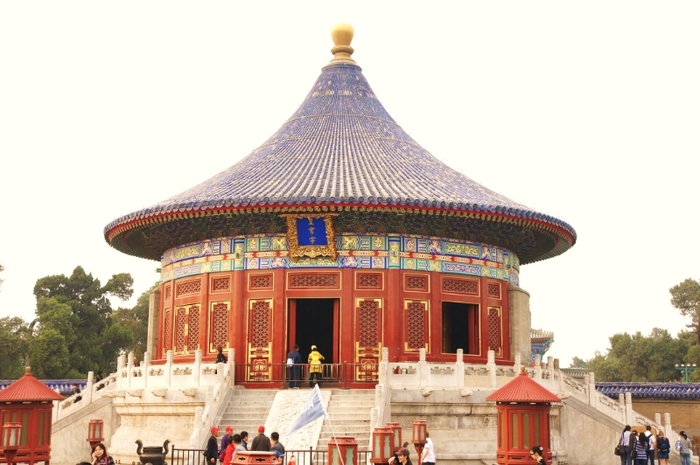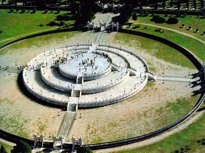 Первым на этой дороге нам встречается «Алтарь Неба», с террасами из белого мрамора. Именно тут император «отчитывался» перед небом о своих деяниях и предавался размышлениям. Алтарь построен таким образом, чтобы все его основные элементы были по своему количеству кратны 9, это и каменные плиты, составляющие площадку и ступени с элементами балюстрады – все кратно 9. Именно это число считалось в Древнем Китае священным.