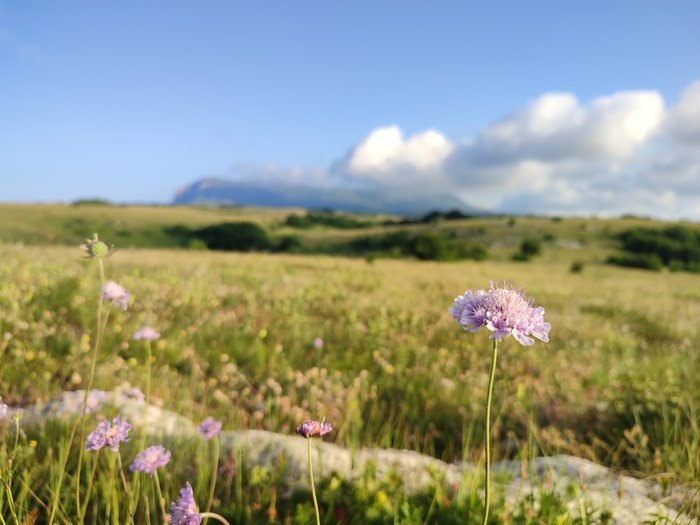 Неделю назад снова очутилась на Чатыр-Даге. На нижнем плато россыпь земляники, ну и верхнее показалось из облаков.
