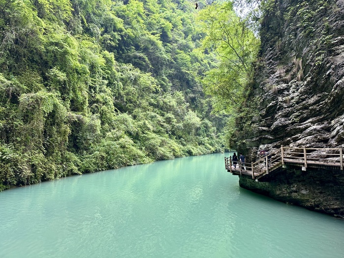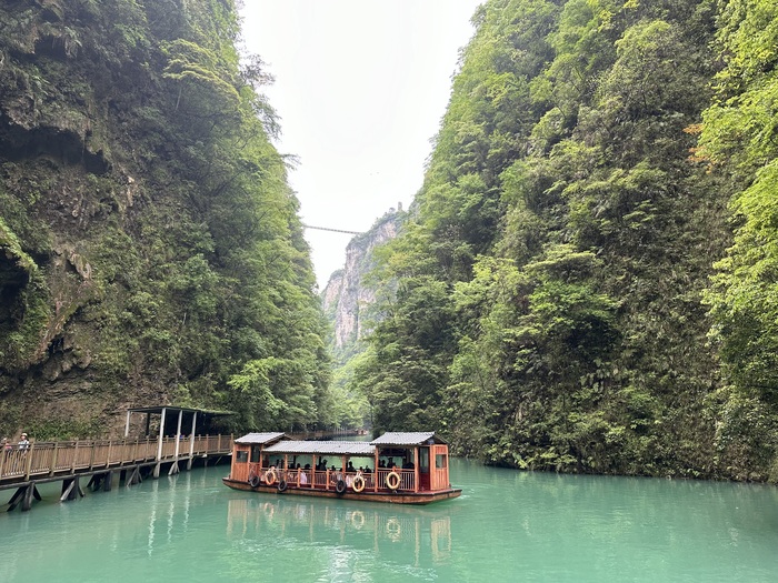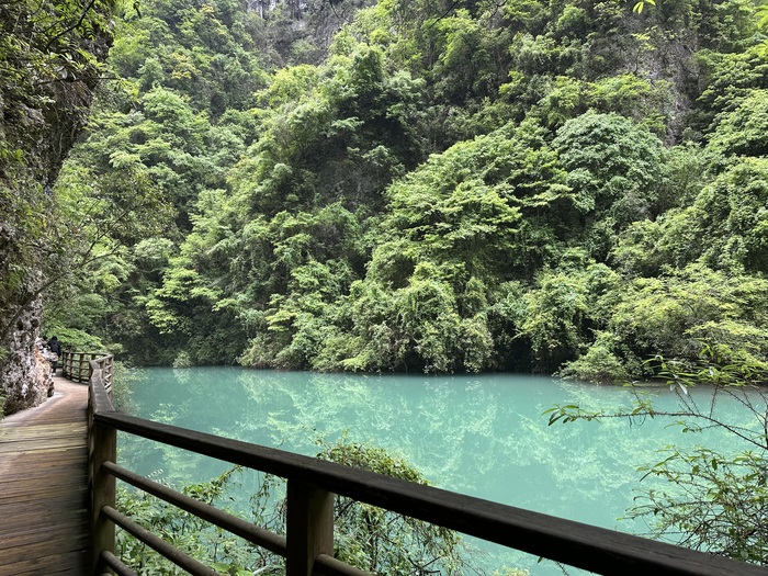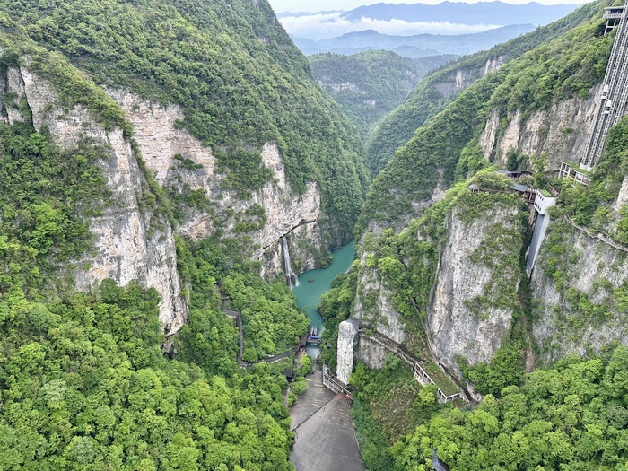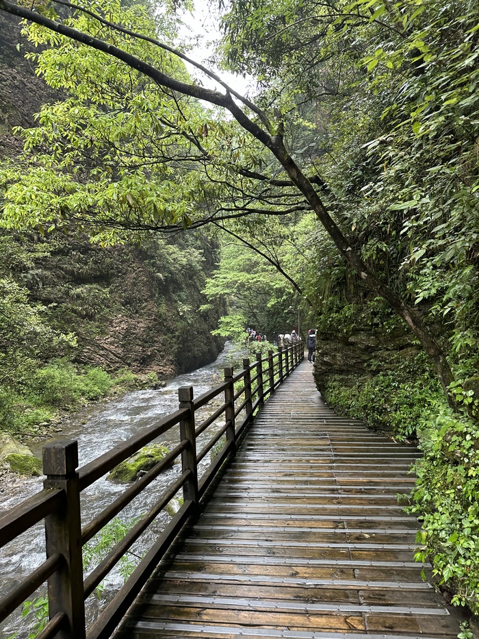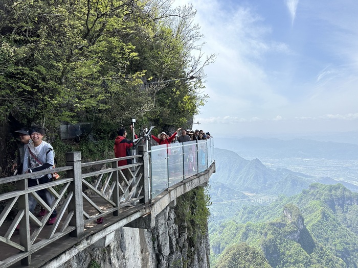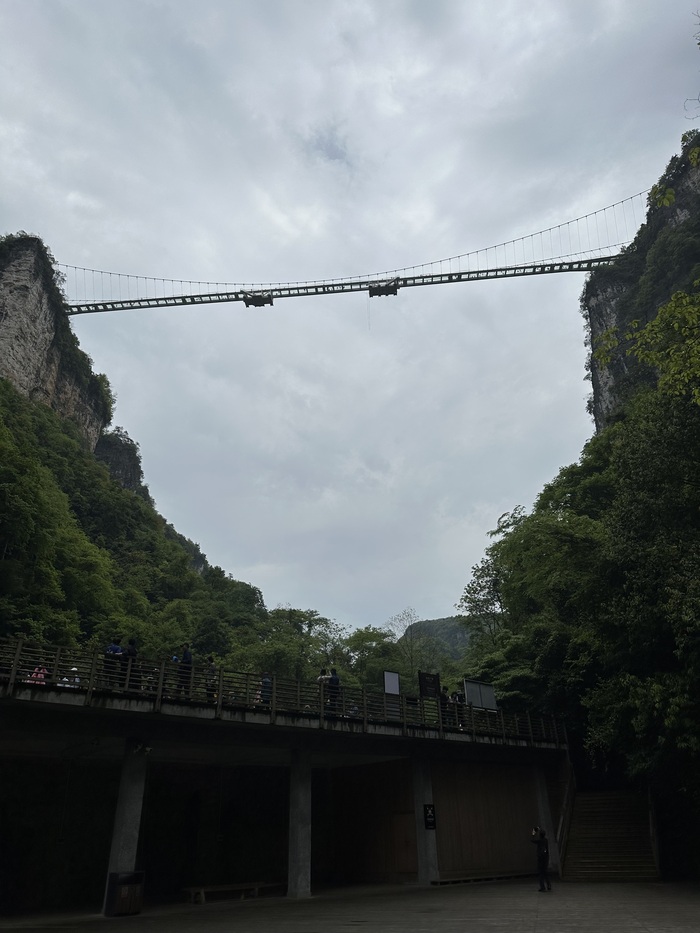 Там находится ущелье, петляющее вдоль долины реки. Через него провели стеклянный мост. Китайцы говорят, что это самый длинный и высокий стеклянный мост в мире - 430 м длиной, 6 м шириной и на высоте 300 м над пропастью ущелья.