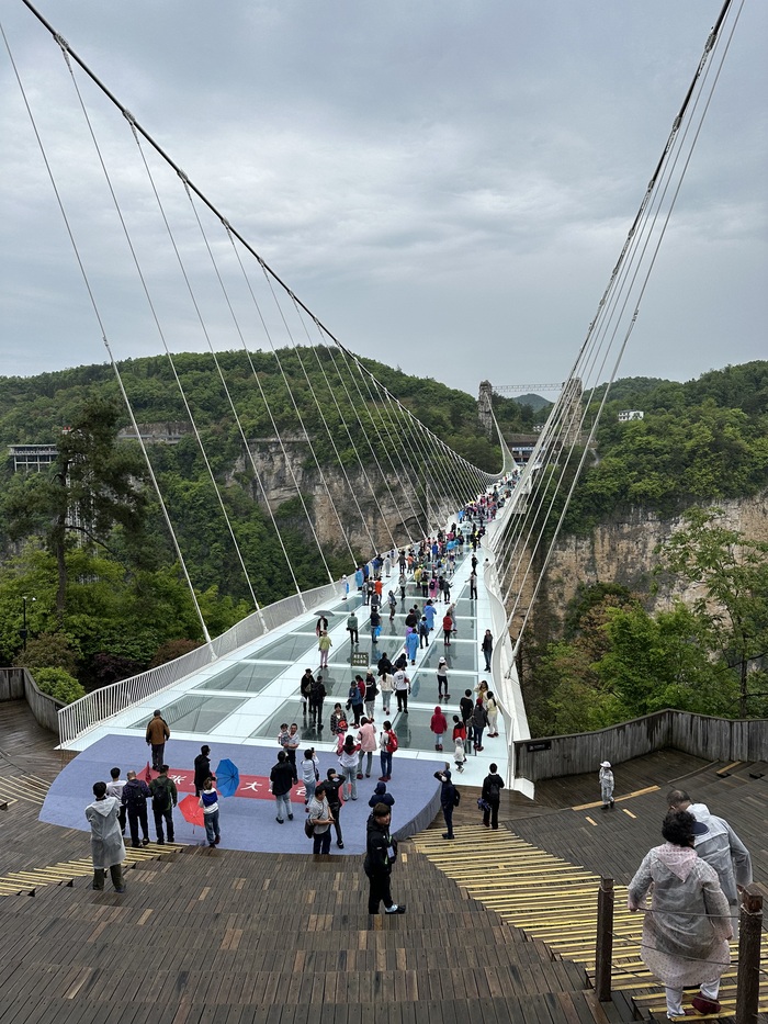 Это самый длинный (430 м) и самый высокий (260 м) стеклянный мост в мире. Он рассчитан на одновременный приём 800 пешеходов.