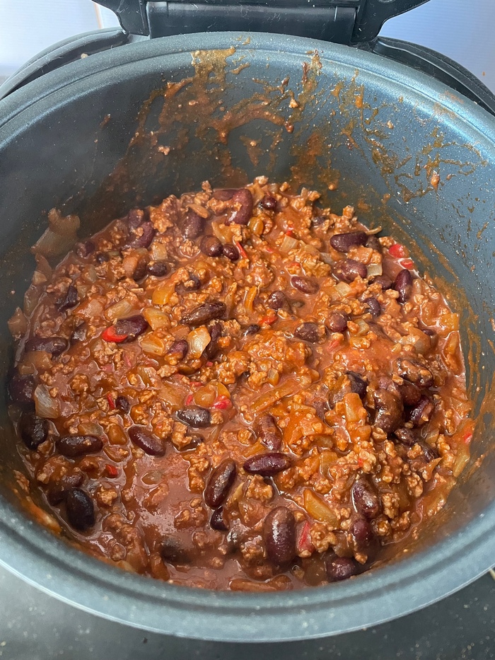 Знали бы вы, как эта говядина пахла! Хотелось забить на чили, а просто смешать ее с луком, маринованными огурцами, каперсами и вустером и сточить под бокал красного сухого.