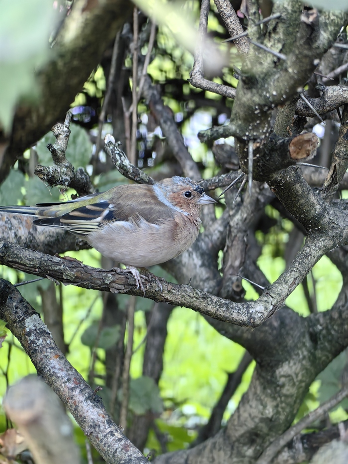 Перекочевал он благополучно на ладонь жены и отогревался в ней с полчаса, даже не делая попыток улететь или удрать. Провели птице экскурсию по даче, посетили дом, окрестности. Башкой вертел с удовольствием (наверное). От червяка, ловко вытянутого из земельки благородно отказался. И в один момент просто взял и сорвался с ладони в полёт, предварительно насрав в ладошку (падла).