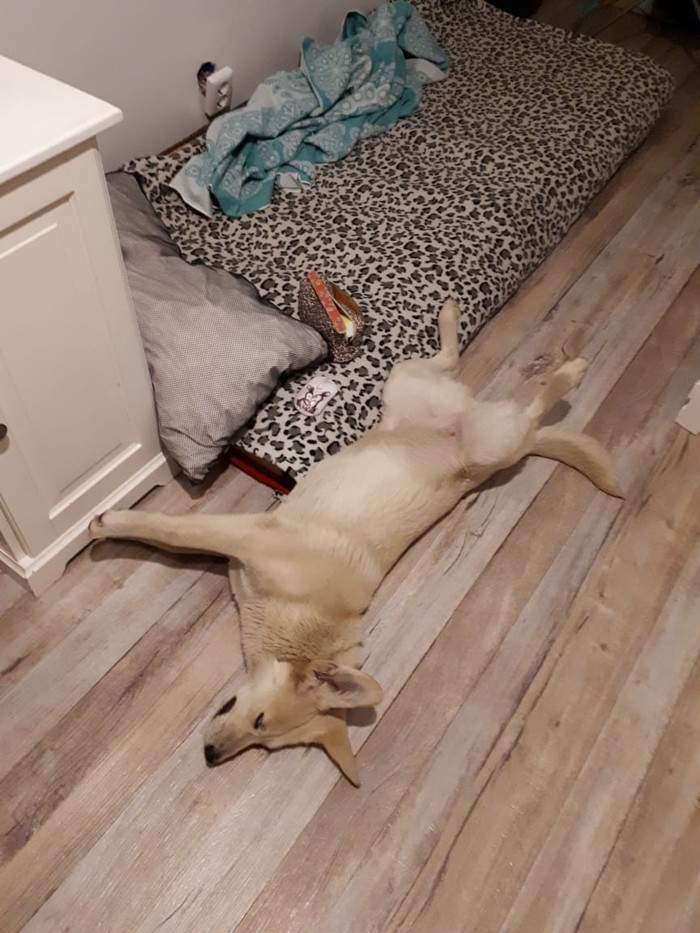 Подруга вчера написала, что пошла в магазин, купила что надо, выходит, а там собака сидит около крыльца, увязалась за ней. Зашла вместе с ней в подъезд. Поднялась на лифте. Зашла в квартиру. Даже не притронулась к еде, завалилась спать и давай храпеть. Подруга, девочка очень добрая к собакам и выкинуть ее на улицу не смогла. Сегодня пойдет уже с ней гулять)