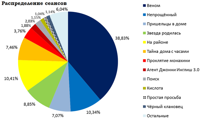Кассовые сборы российского кинопроката и распределение сеансов за прошедший уик-энд (4 - 7 октября)