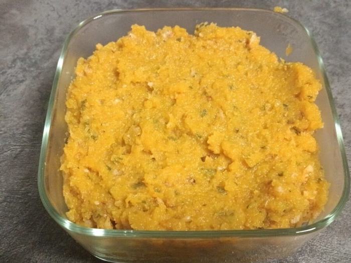 Разогрейте духовку в режиме гриль до 200C. Жарьте тыкву 15-20 минут до готовности (не передерживать, иначе будет горчить). Добавьте измельченные грецкие орехи, сок лимона, порошок чили, оливковое масло, соль и черный перец. Смешайте до консистенции хумуса. Проверьте густоту смеси и при необходимости добавьте оливковое масло.