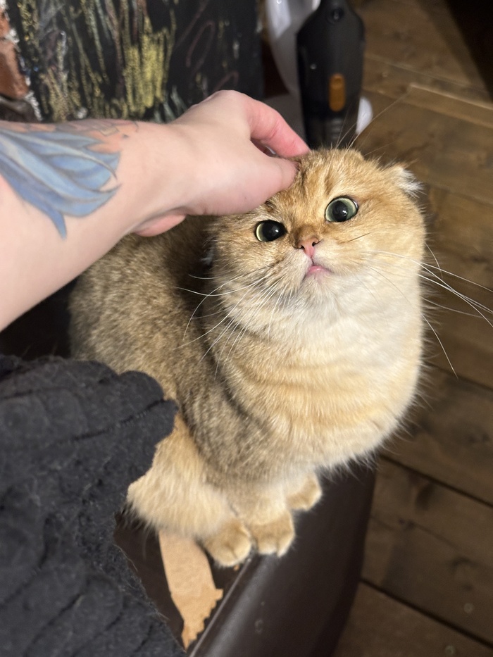 Марио дружелюбен с другими кошками, ко всем людям относится с добротой и идет на контакт.